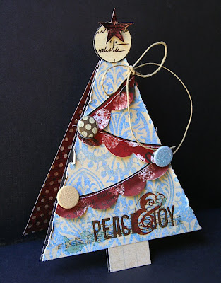 Next, a mini album with photos of us decorating our tree last year. I used the star die cuts to mist over on the front cover. Here are just a few inside peeks. To see the rest of the pages, click HERE.
